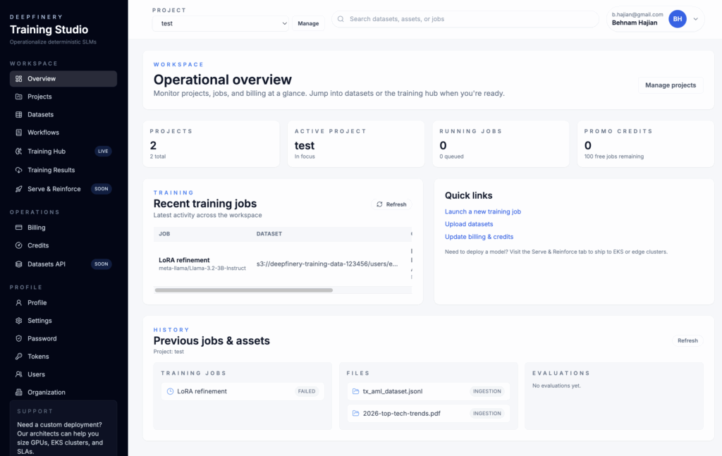 DeepFinery is the end-to-end platform that ingests text-based business rules, generates synthetic data, and fine-tunes enterprise-grade Small Language Models (SLMs) automatically.